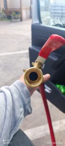 • לחץעל הידית כדי לשחרר את חומר הכיבוי.